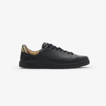 절개 구조와 둥근 앞코, 측면 밑창에 로고 각인,