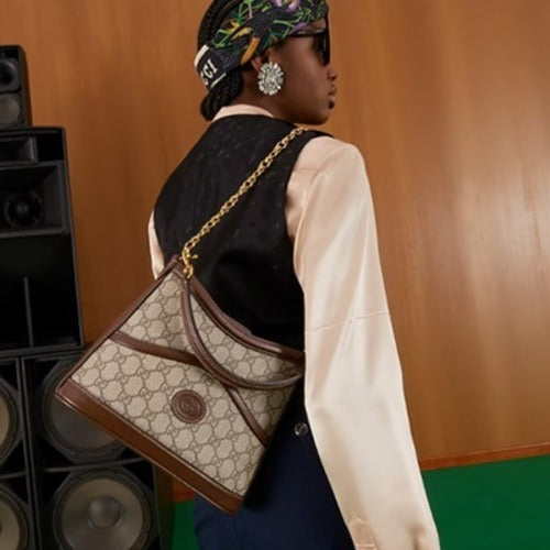 인터로킹 G 상징적인 엠블럼을 상단에 레더 디테일로 장식한 디자인으로
