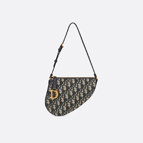 디올 오블리크 새들 숄더 파우치 베이지/블루