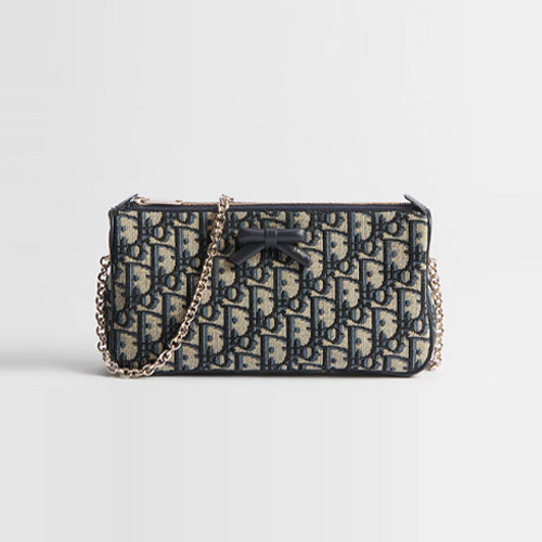 디올 오블리크 보우 체인 클러치 베이지/블루