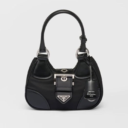 프라다 문 리나일론 가죽 핸드백 블랙 1BA381