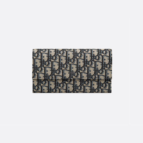 디올 오블리크 자카드 플랩 장지갑 베이지/블랙