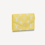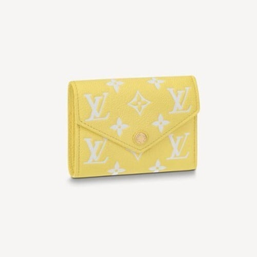 파스텔 옐로우 컬러 모노그램 앙프렝뜨 가죽 소재가 돋보이며