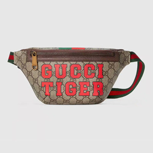 'Gucci Tiger' 모토 프린트가 돋보이는 GG 벨트백입니다