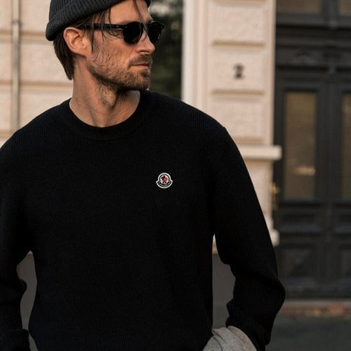 몽클레어 로고 패치 울 니트 블랙