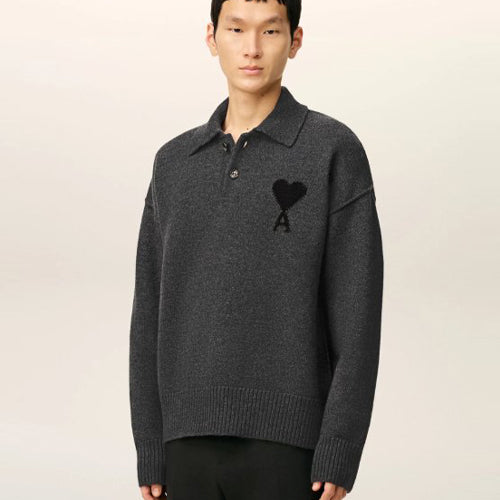 아미 드 꾀흐 하트 로고 울 카라 니트 4color