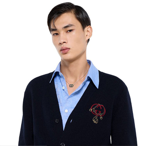 구찌 심볼 장식 니트 가디건 네이비