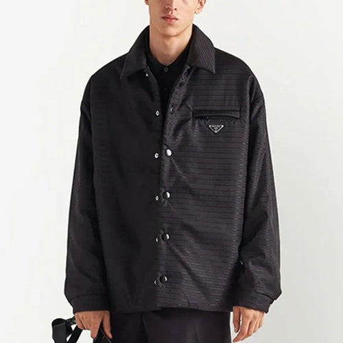 프라다 리나일론 올오버 로고 셔츠 재킷 블랙