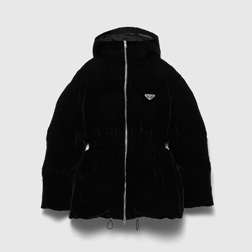프라다 트라이앵글 로고 벨벳 다운 재킷 블랙