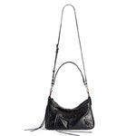 유연한 실루엣과 매듭진 가죽 풀러가 달린 지퍼 잠금장치,