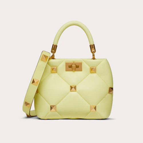 발렌티노 시그니처인 커다란 스터드로 장식한 퀼팅 디테일과