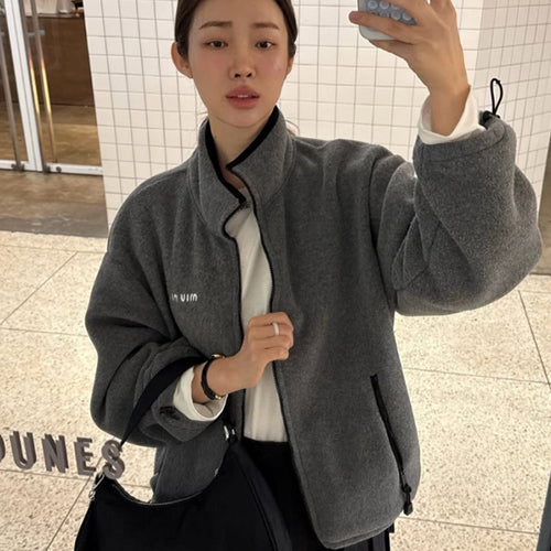 미우미우 플리스 스웨트셔츠 집업 그레이