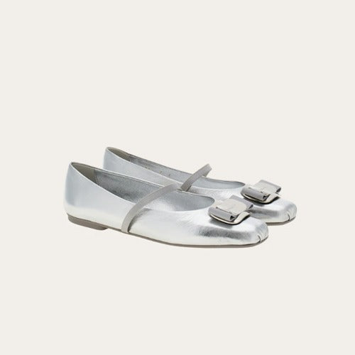 페라가모 뉴 바라 플레이트 발레 플랫 실버/은장