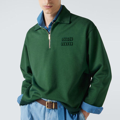 미우미우 하프 지퍼 로고 코튼 스웨트셔츠 그린
