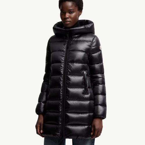 몽클레어 수에니에 후드 미디 다운 재킷입니다