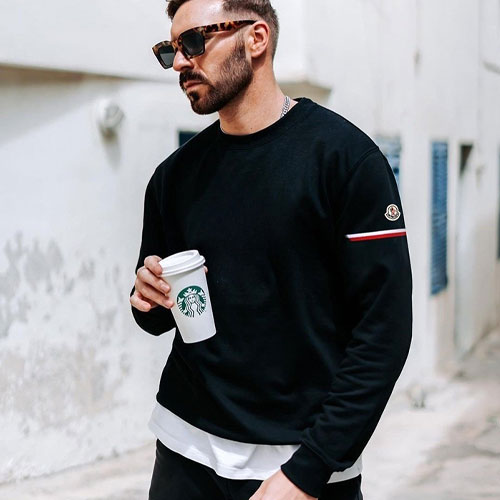 몽클레어 암밴드 로고 맨투맨 블랙