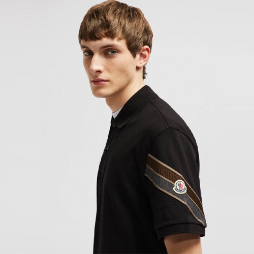 몽클레어 스트라이프 코튼 PK 반팔티 블랙