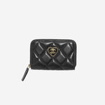 샤넬 CC 하트로고 지퍼 3단 카드지갑 블랙/금장