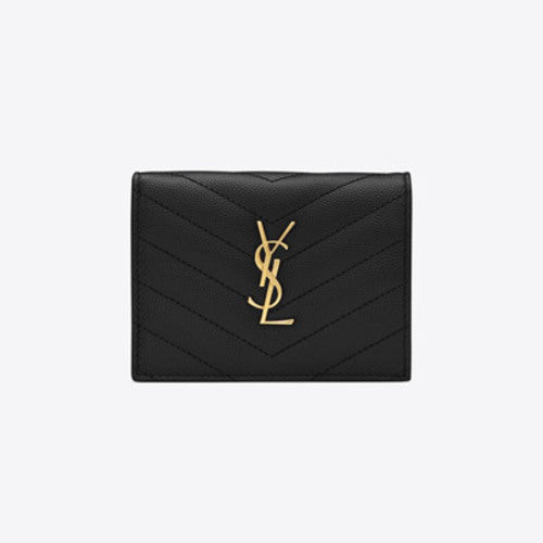 세인트로랑 텍스처드 퀼티드 모노그램 카드지갑 블랙/금장