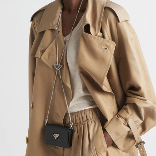 프라다 숄더 스트랩 사피아노 가죽 카드 지갑 블랙 1MR034