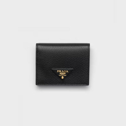 프라다 메탈 로고 가죽 반지갑 블랙 1MV204