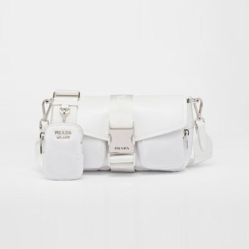 프라다 포켓 나일론 가죽 숄더백 화이트 1BD295