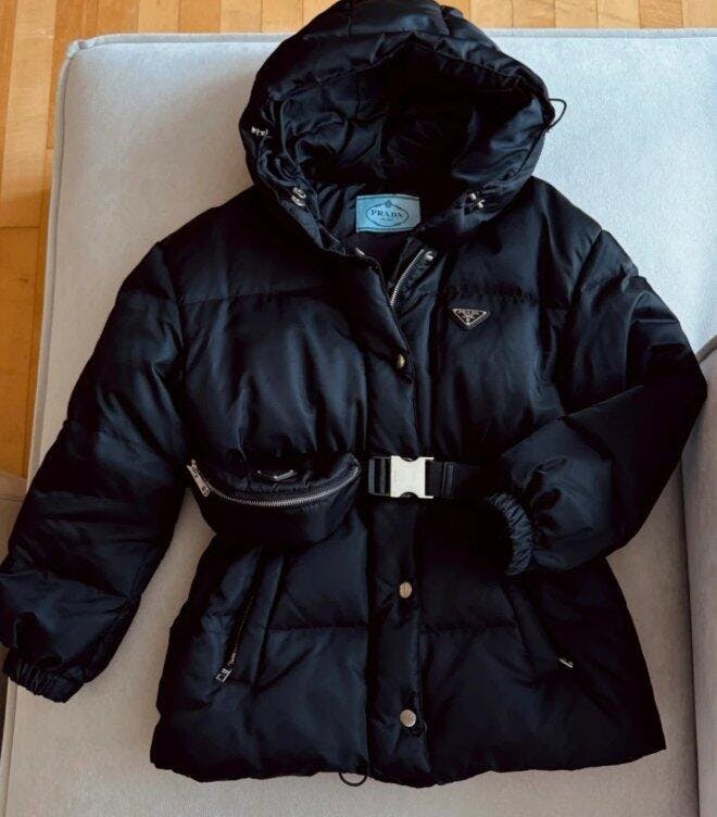 프라다의 아이코닉한 소재에 구스 다운을 더해